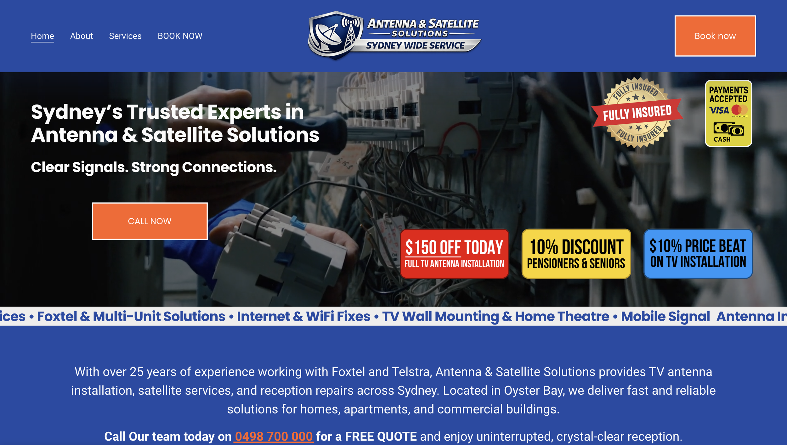 Developed the full brand identity and digital presence for Antenna & Satellite Solutions to help the business attract local customers searching for antenna services in Sydney.